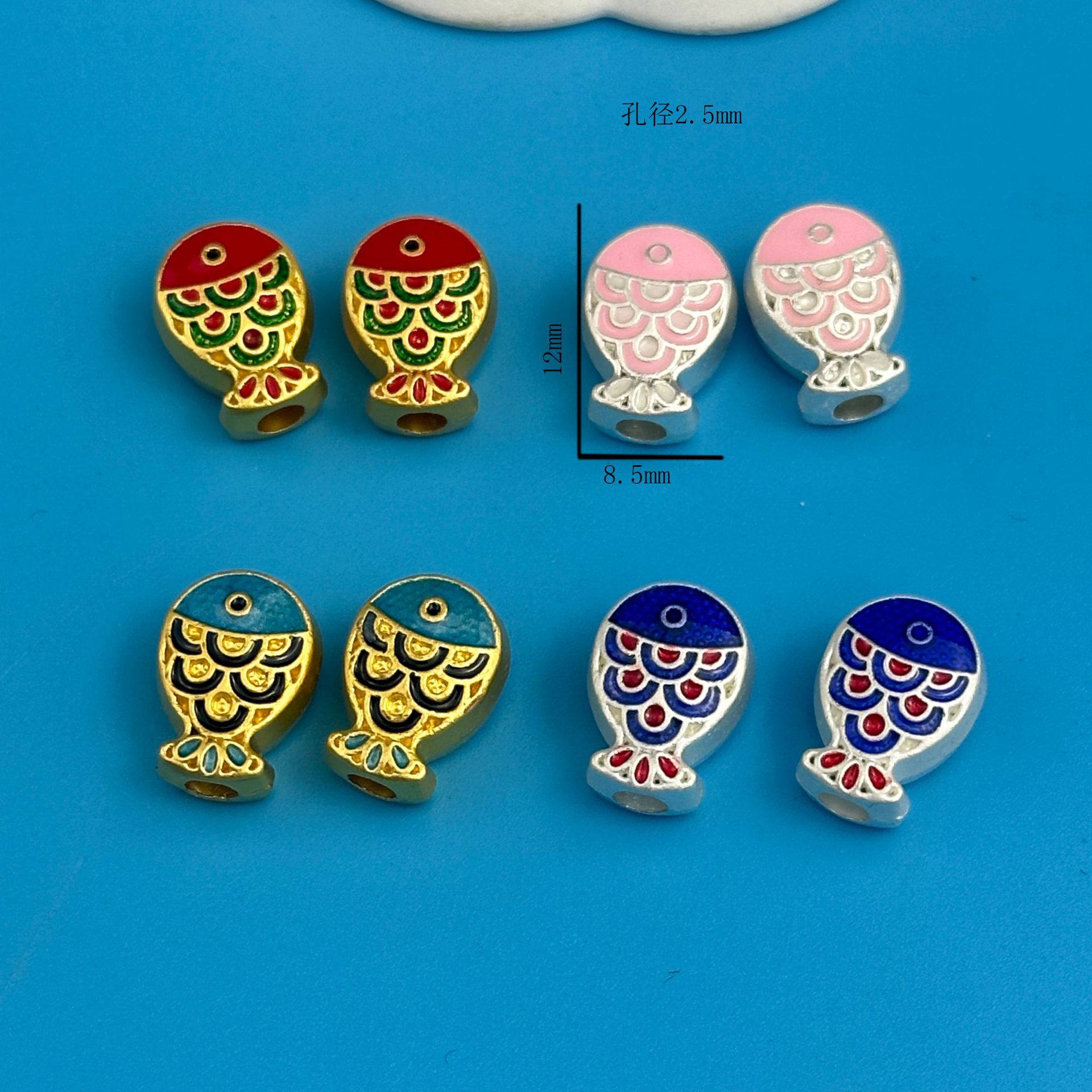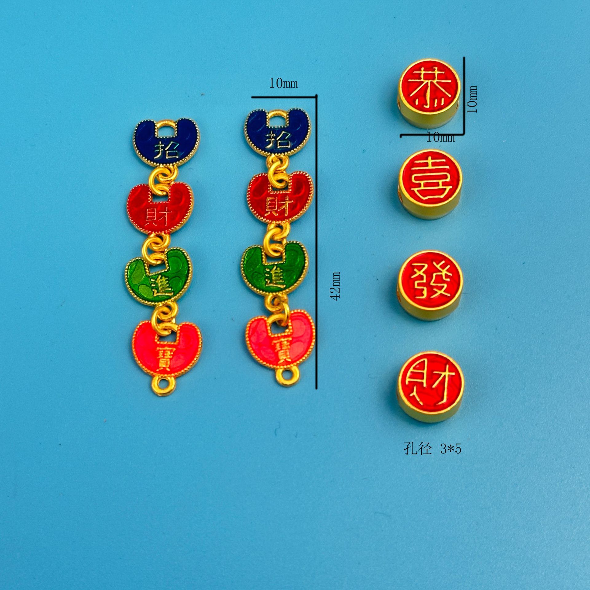 保色沙金国潮焼藍錦鯉福字隔珠ブレスレット輸送珠diy車掛手紐アクセサリー部品