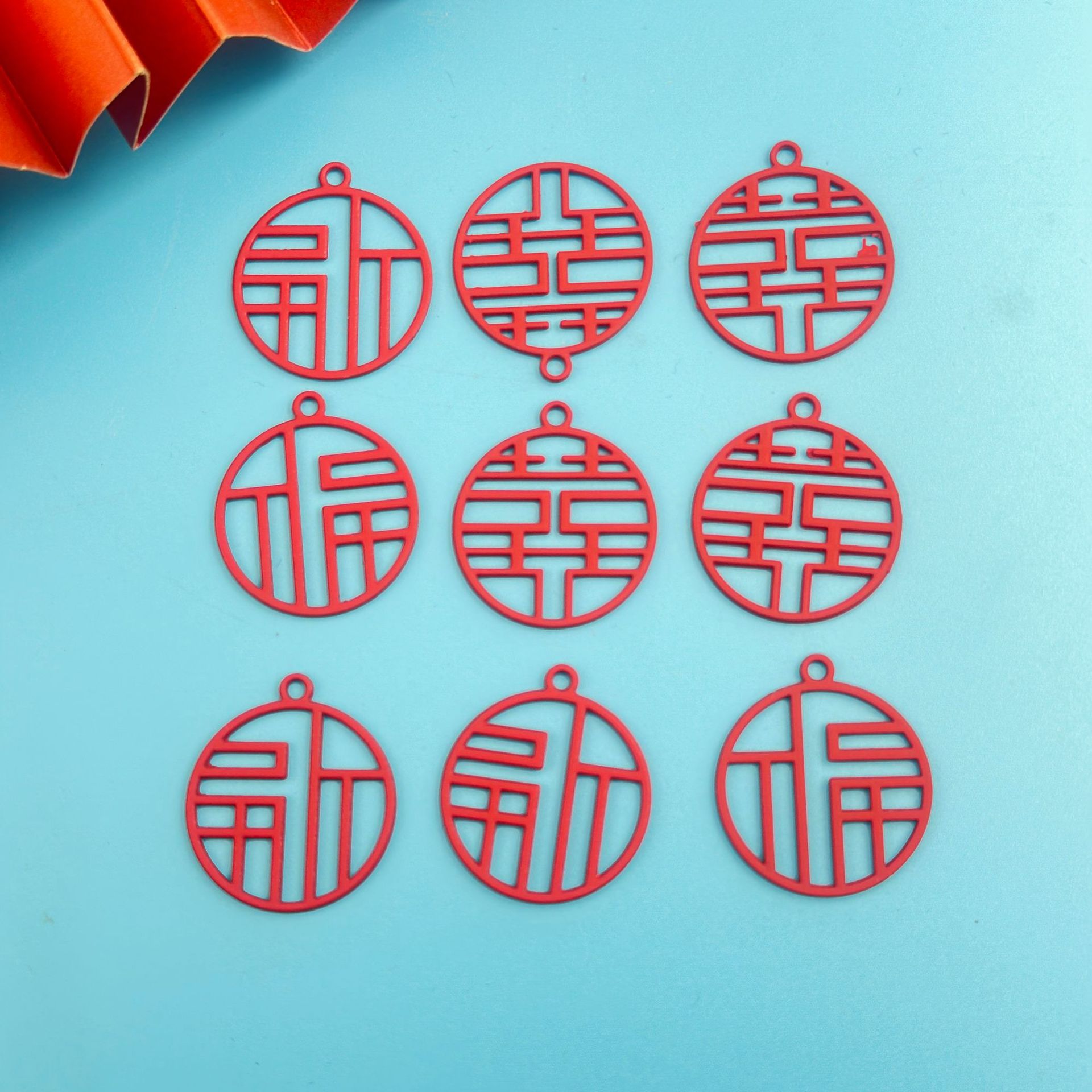 焼き漆大紅双喜福字結婚祝い喜糖箱金属喜字ストラップdiy亜鉛合金靴バックルアクセサリーストラップ