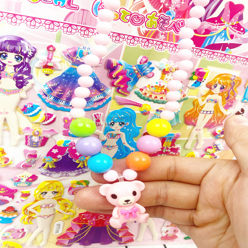子供の女の子がアニメのブレスレットのネックレスの立体的な着せ替え幼稚園の奨励早教シールdiyシール