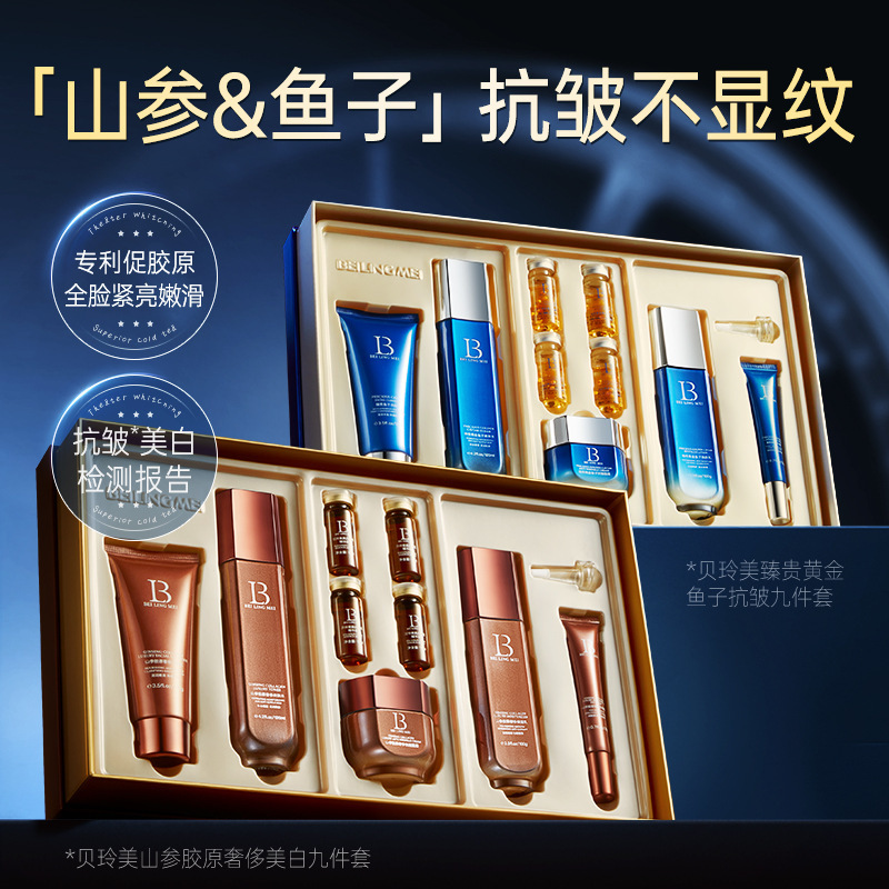 貝玲美の至高の貴重な黄金の魚のしわの9セットは水を補って保湿して潤いが明るくて繊細な肌を持ちます。