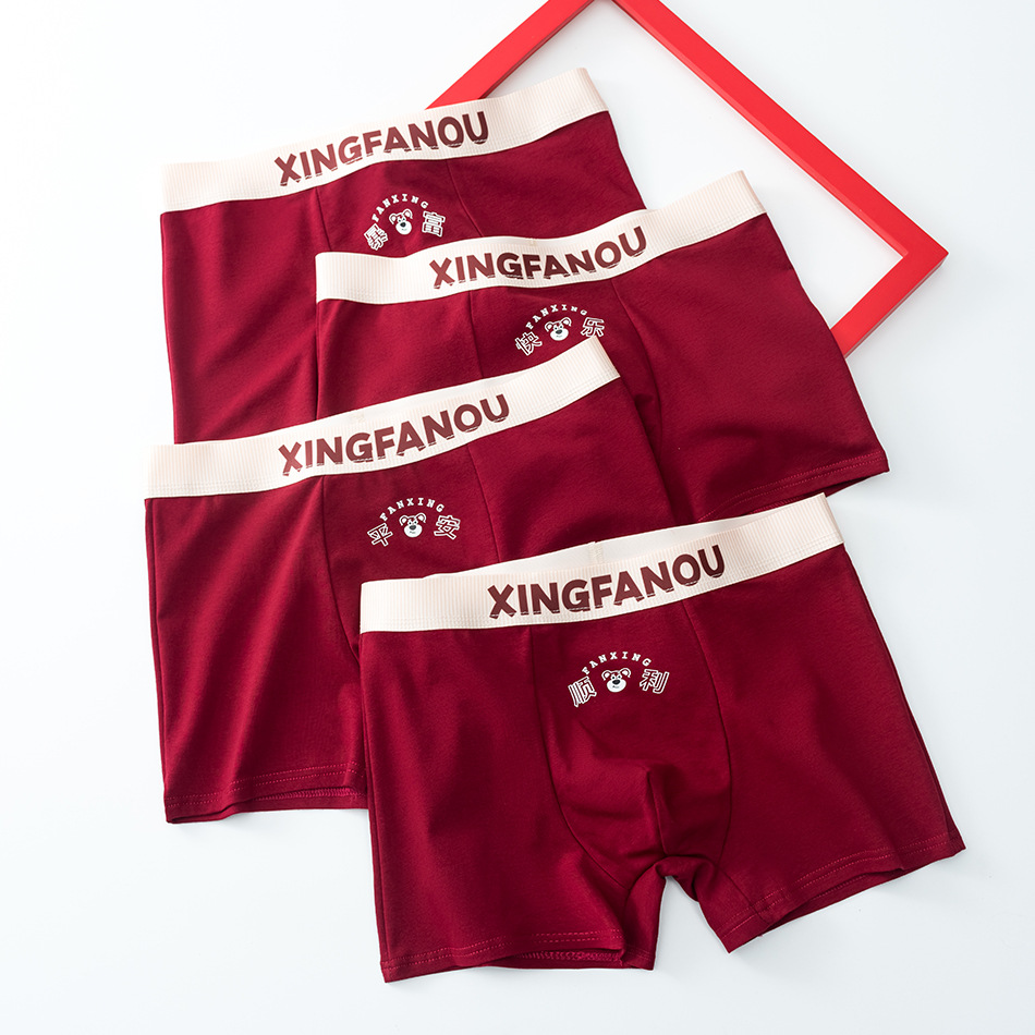 本命年男性下着7a抗菌股綿下着男性おめでたい結婚ワインレッド男性平角四角ズボン