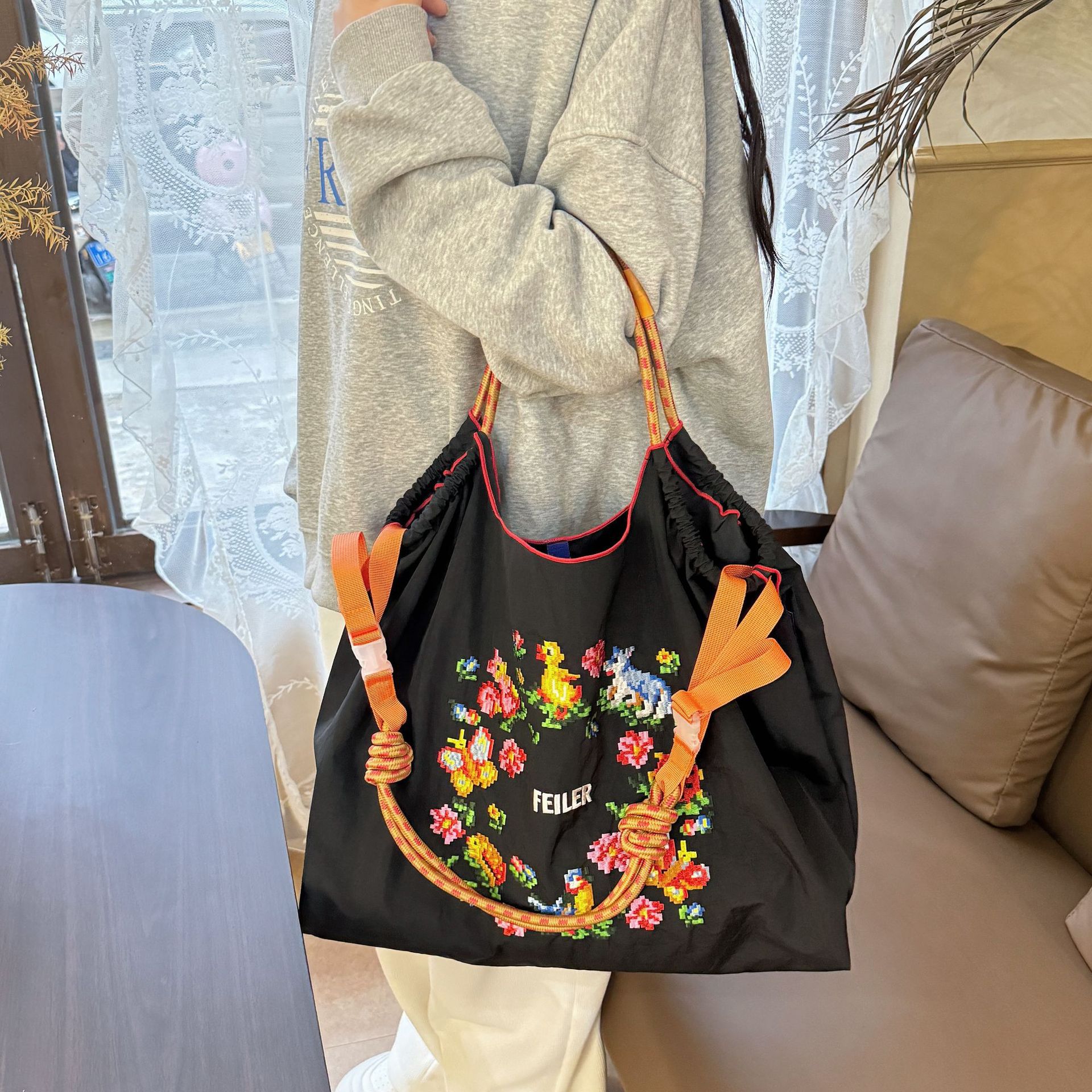 秋冬新作 レディースバッグ 刺繍入り漫画柄 大容量トートバッグ 多用途キャンバスバッグ ショルダーバッグ スティッチバッグ