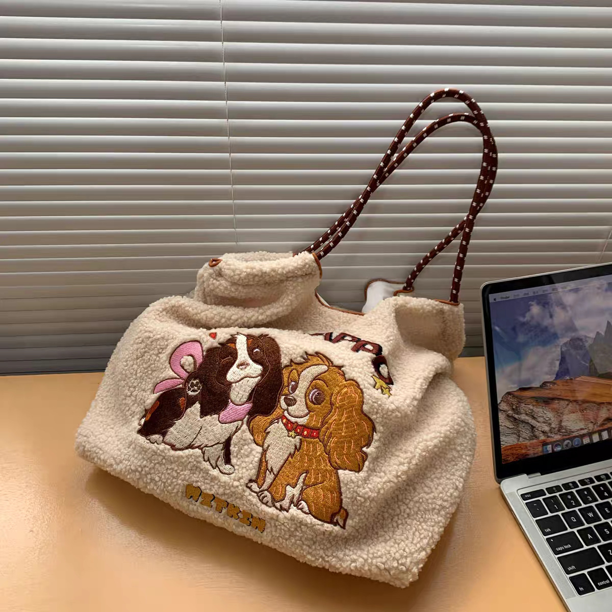 2024新型バッグ女子犬刺繍レジ袋羊小毛大容量バッグショルダーバッグ