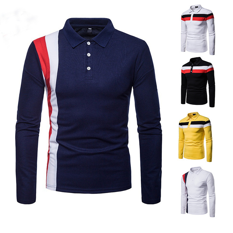外国貿易クロスボーダー秋新作三色ステッチファッションカジュアルメンズ折り襟長袖poloシャツ長袖通勤上着