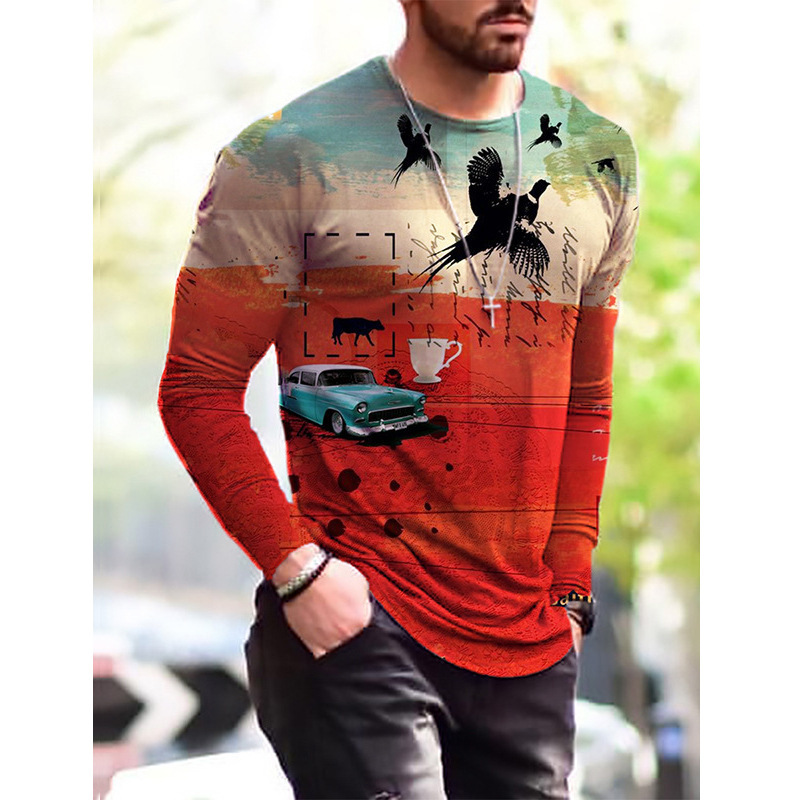 欧米のクロスボーダー2024新型男性ファッション街頭上着メンズ3d長袖プリント丸襟プルオーバーtシャツ