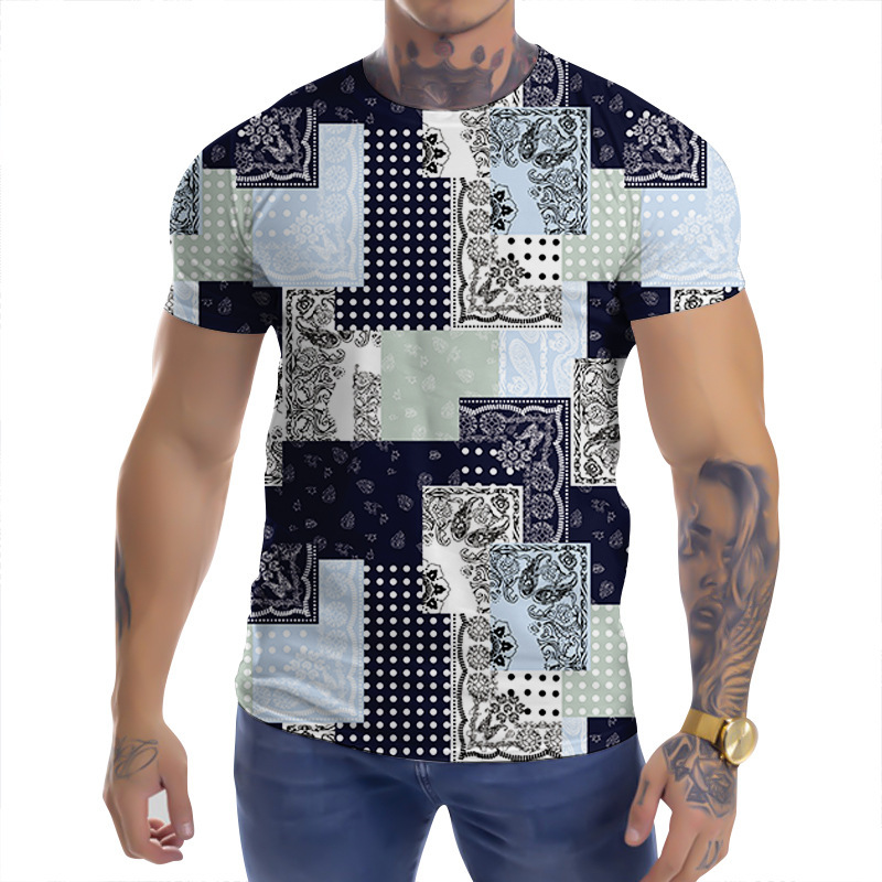 2024クロスボーダー新型欧米トレンドデジタルプリント半袖tシャツストリートファッション丸襟tシャツメンズ