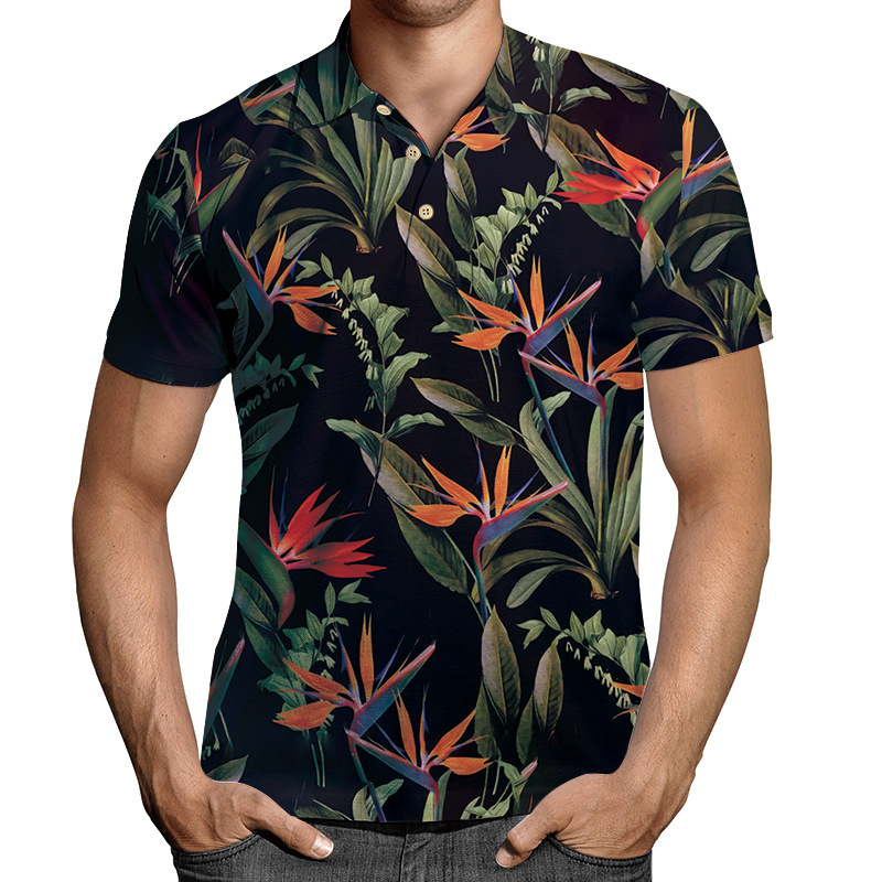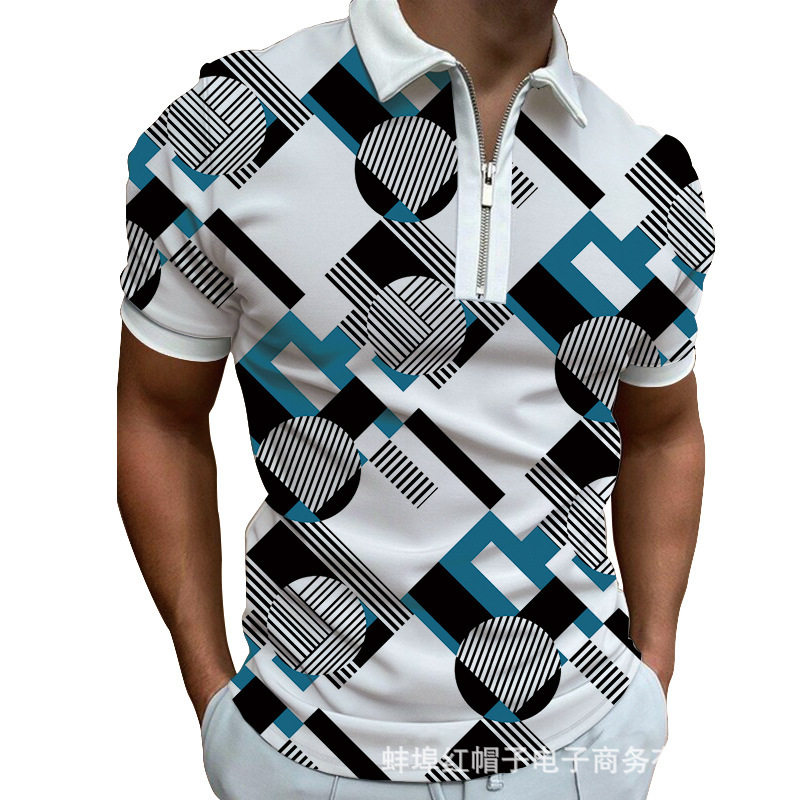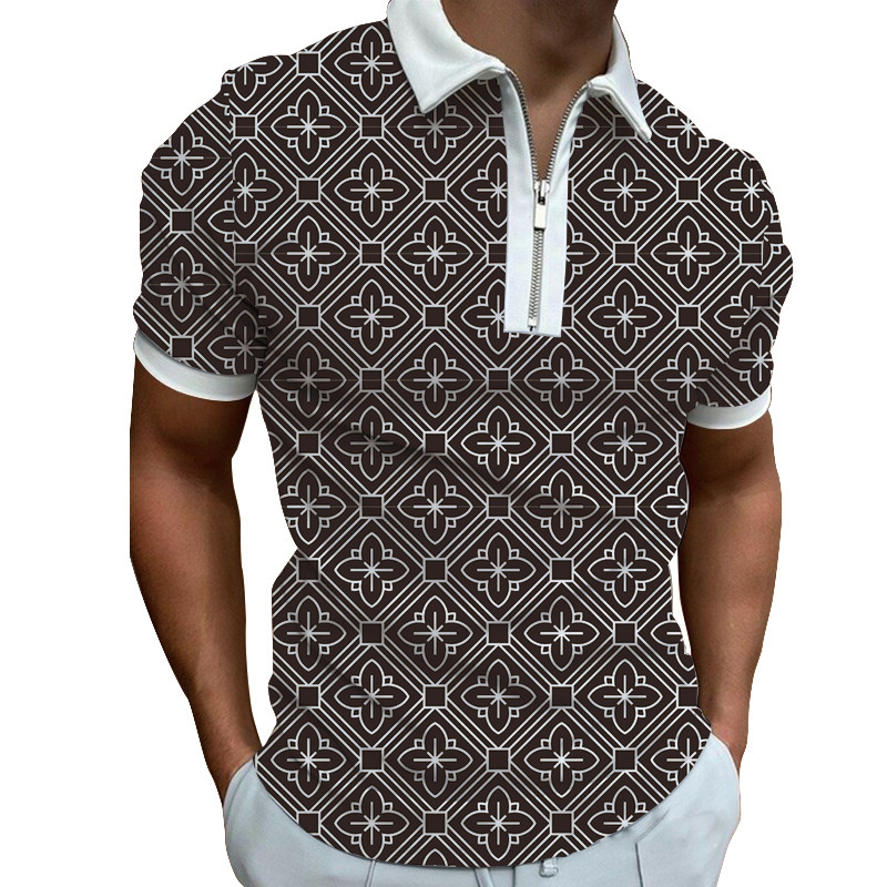 国境を越えた対外貿易2024夏の男性ファッションカジュアル流行プリントポリエステル半袖ジッパーpoloシャツtシャツ男