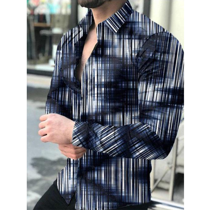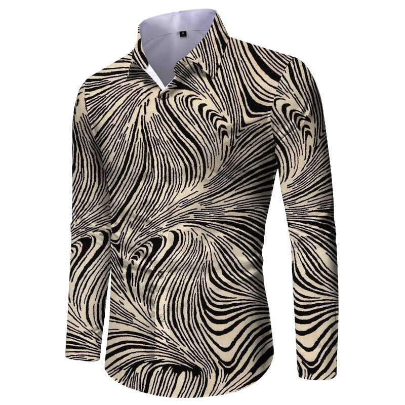 国境を越えた新製品2024男性3dプリントカジュアル修身襟長袖シャツ男性薄手対外貿易青年シャツ
