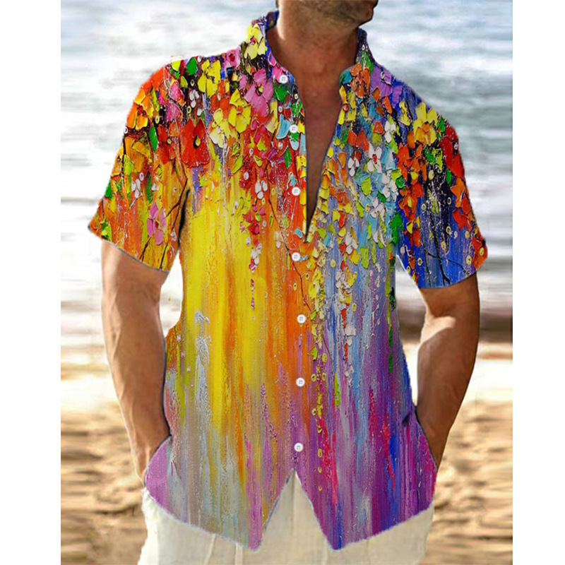 2024夏の対外貿易で爆発した男性カジュアルシャツハワイ風立襟半袖3dプリント男性シャツ男性