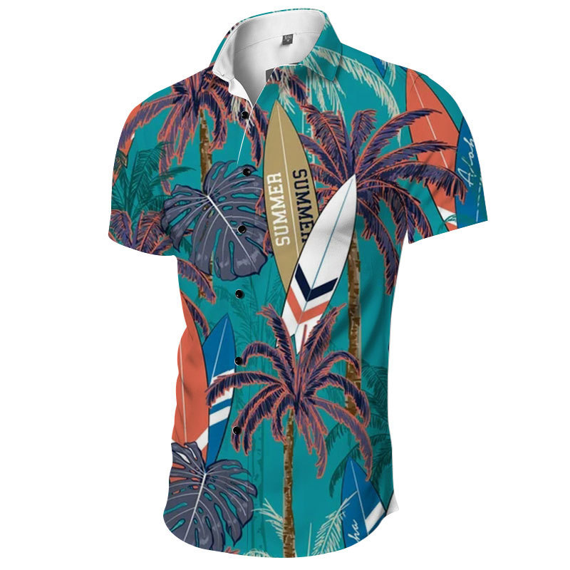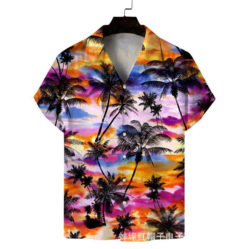 新商品2024外国貿易夏半袖ヤシの木プリントシャツハワイ海辺の休暇カジュアルシャツ男