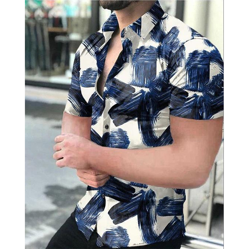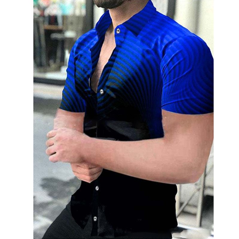 2024外国貿易金夏半袖3dプリントシャツ男性カジュアル襟薄い半袖シャツ男性