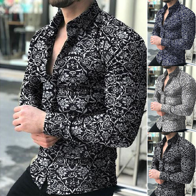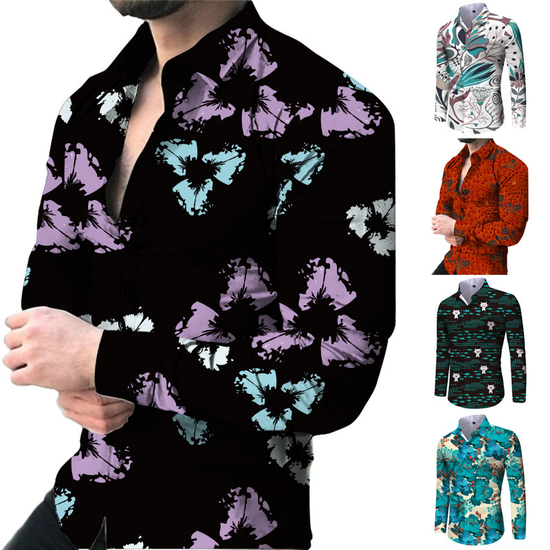 外国貿易の新型欧米春秋メンズ長袖シャツカジュアルプリント花柄シャツ男性上着