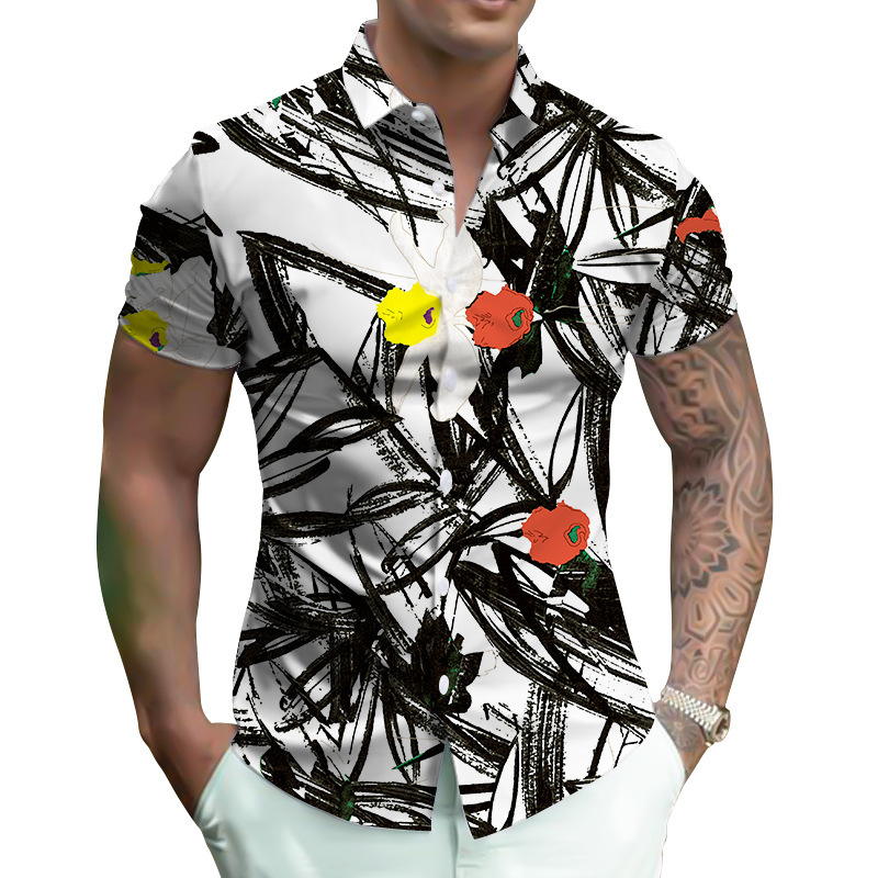 2024春夏対外貿易新型男性デジタルプリントカジュアル半袖折り襟ハワイカーディガンシャツ男