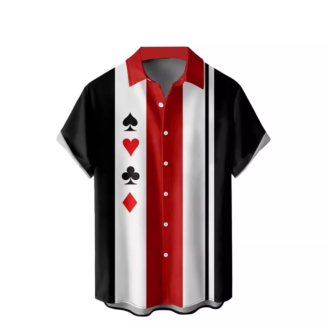 メンズハワイアンボールシャツ半袖プリントレギュラースタイル夏ビーチカジュアルボタン式ハワイアンシャツ