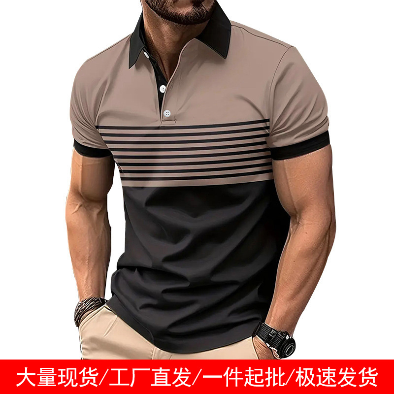男性poloシャツの新型アマゾンクロスボーダーカジュアル偽ポケット襟poloシャツのプリントボタンの色合わせtシャツ