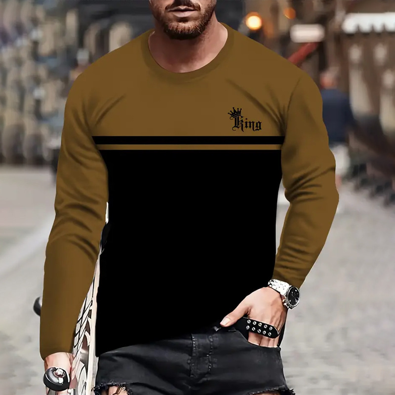 アルファベットプリント柄長袖tシャツ丸首ゆるい男カジュアル3dデジタルプリントクロスボーダーtemu
