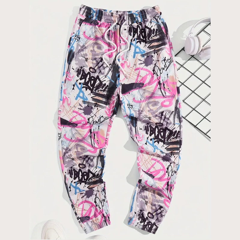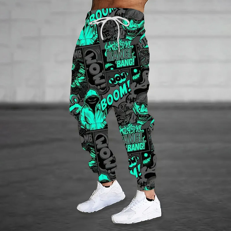 3Dデジタルプリント男性カジュアル束足スポーツパンツ男性伸縮腰引きロープ衛ズボン