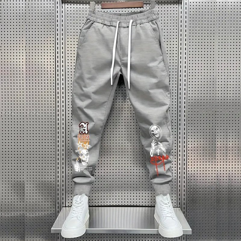 春と秋の新型男性レジャースポーツの足首のズボンの男性のプリントは腰のズボンを緩めます。