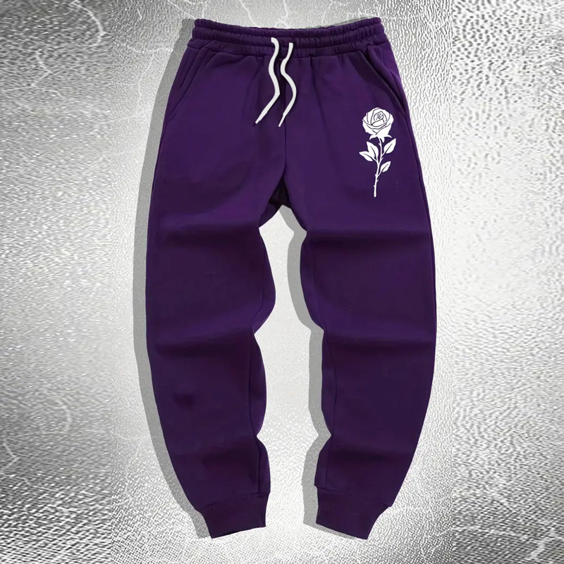 ローズ柄プリントメンズカジュアルスポーツパンツメンズストレッチウエストプルオーバー