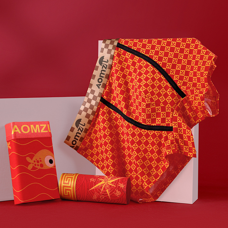 本命年男性下着結婚大赤色下着純綿三角半ズボン