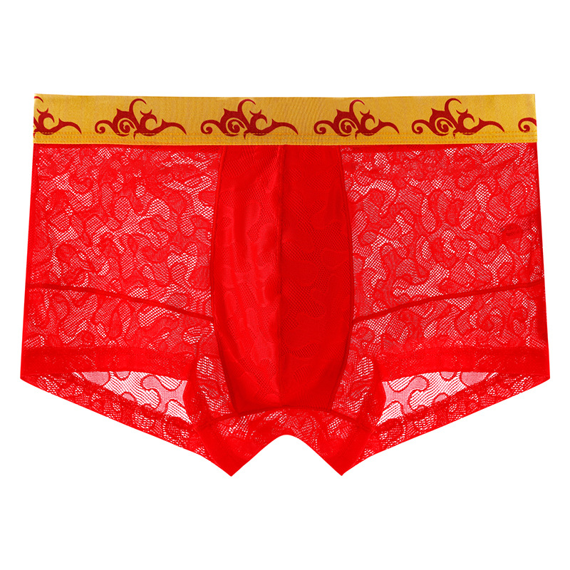 赤い本命年氷糸通気性男性平角下着セクシーレースプリント中腰男性式四角パンツヘッド