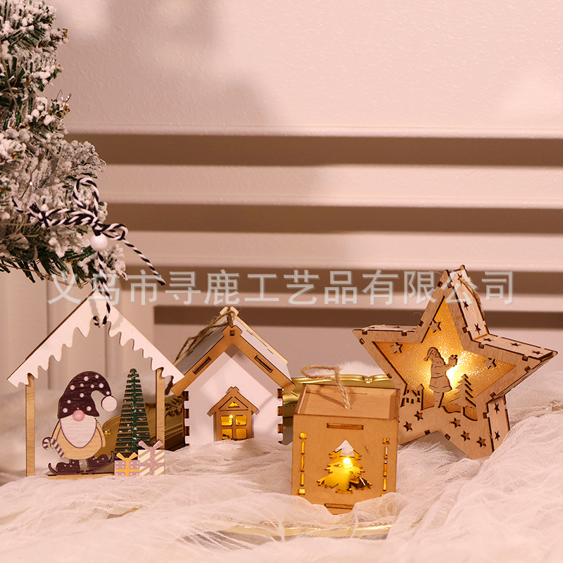 新しいクリスマス木製家クリスマスツリー小さな家発光装飾品デスクトップシーン道具装飾ストラップ