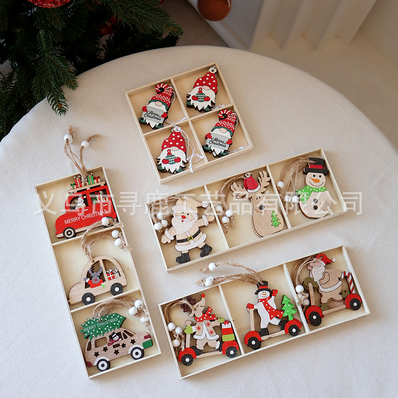 新しいクリスマス装飾ストラップ装飾漫画ヘラジカ雪だるま木製人形ペンダントクリスマスツリー装飾品