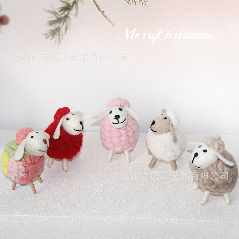 北欧創意家庭羊毛フェルト小羊動物置物少女心部屋かわいい家庭デスクトップ撮影書斎