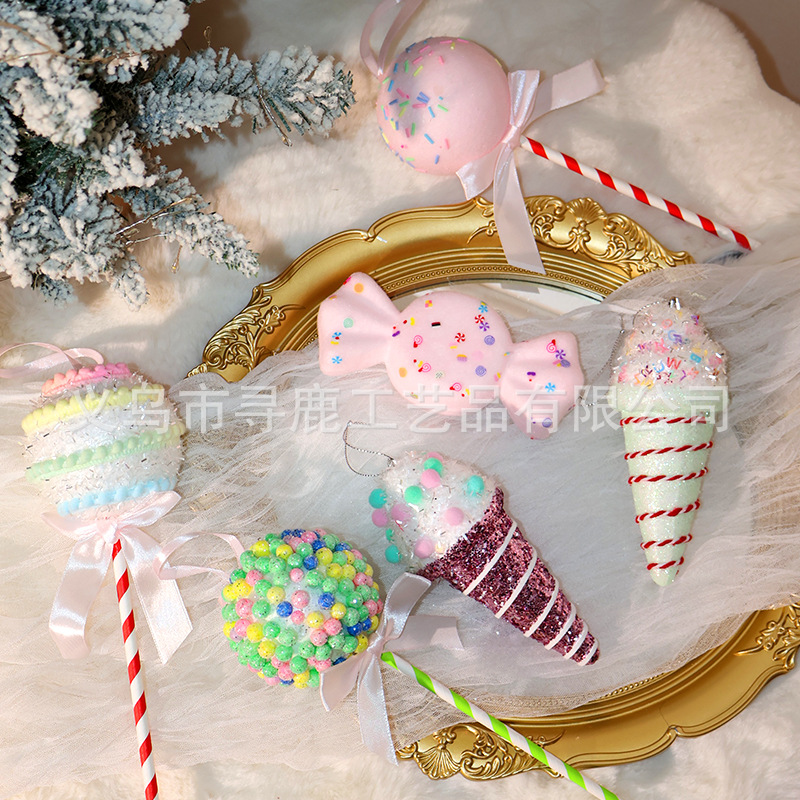 新しいマカロンクリスマスツリー装飾ストラップアクセサリークリスマスコーンキャンディーアイスクリームクリスマスボール装飾用品