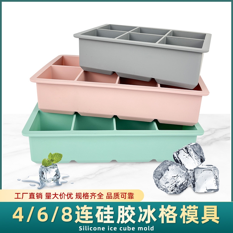 Amazonのベストセラー食品グレードの蓋付きシリコン製製氷皿、家庭用正方形4、6、8グリッド製氷型