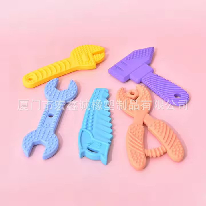 国境を越えたハンマーレンチの歯のゴムの漫画のセットのおもちゃの赤ちゃんはゴムをかじって手のシリコンを食べないで歯の棒をなだめます。