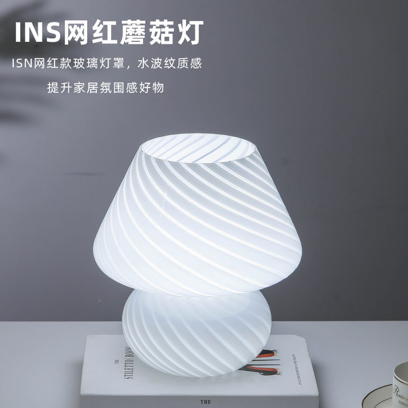 クリエイティブガラス電気スタンドレトロ小紅書キノコ灯民宿書斎ins小夜灯寝室睡眠ベッドヘッドライト