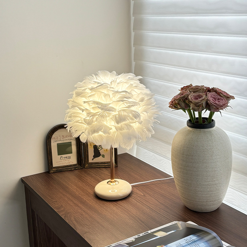 羽毛の電気スタンドの寝室のベッドの上の王女の結婚室の暖かい誕生日プレゼントの小さい夜の明かりの結婚室の暖かい装飾の電気スタンド