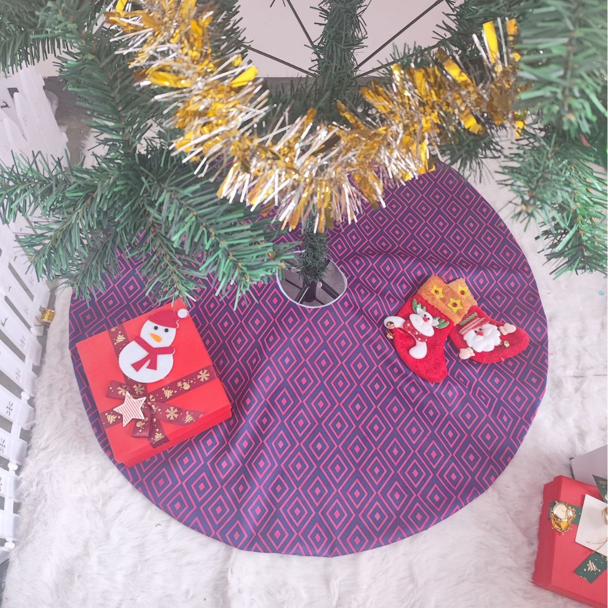 クロスボーダー新作ストライプ菱形格子クリスマスツリー柄スカート デジタルプリントクリスマスソックス 二層模様装飾品
