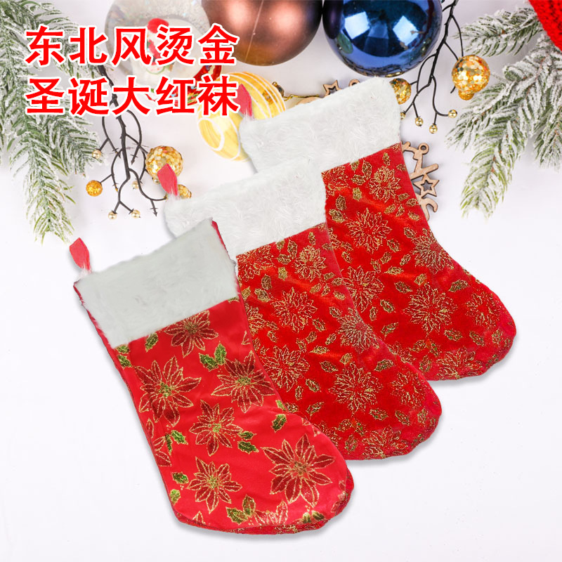 クリスマス装飾品東北大花靴下クリスマス靴下クリスマス金糸箔押しクリスマスプレゼント袋大赤靴下