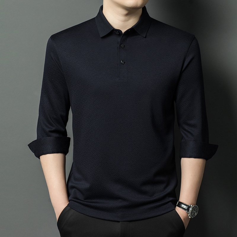 2025 秋の新メンズ長袖カシミヤ Tシャツプルオーバーラペル中年ファッションカジュアルボトリングシャツ男性