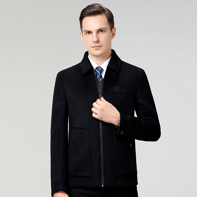 25秋冬新作メンズジャケット、若者・中年男性向けカジュアルラペル両面ウール混紡ショートジャケット