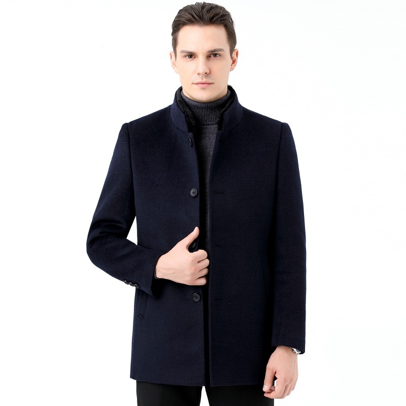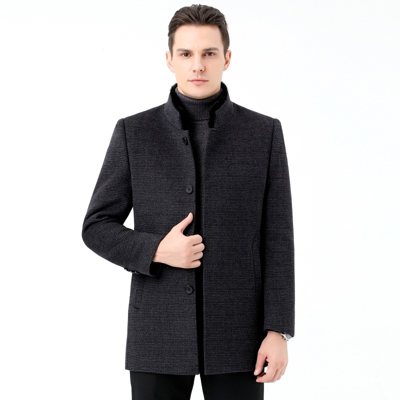 冬服中年男性ウールコートミンクファー襟グースダウンライナーミドル丈暖かい両面ウールカシミヤジャケット