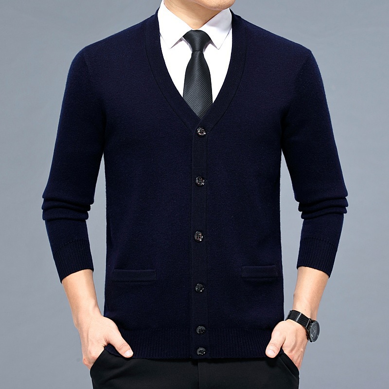 カシミヤセーターメンズ冬中高年カーディガンコートVネック大きいサイズメンズウールセーター厚く暖かいセーターメンズ