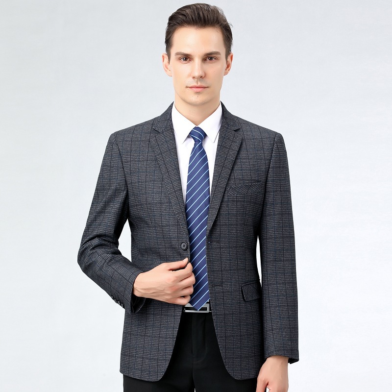 メンズカジュアルスーツ秋と冬の新しい中年男性チェック柄トレンディなファッションウールシングルスーツジャケット卸売