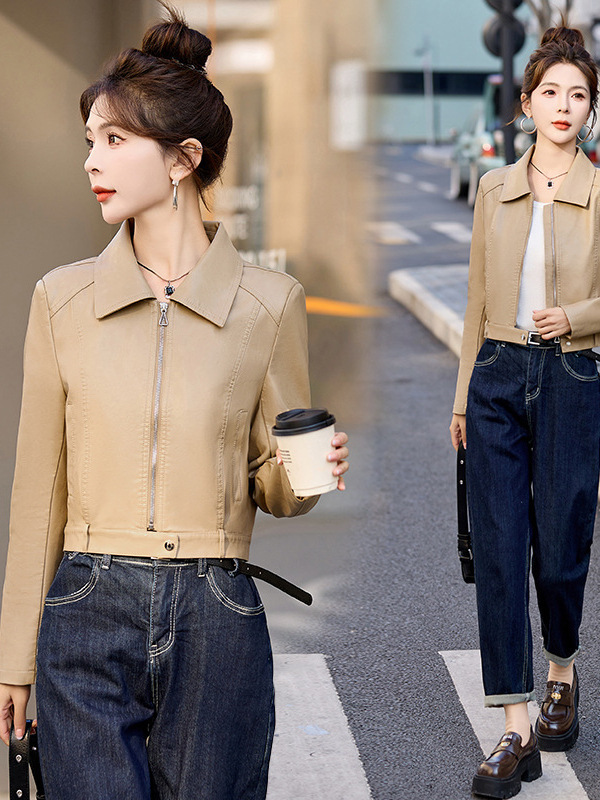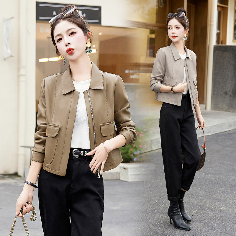 ルーズレザージャケットレディースジャケットショートコート2025春秋新作韓国風小柄カジュアルバイクジャケット