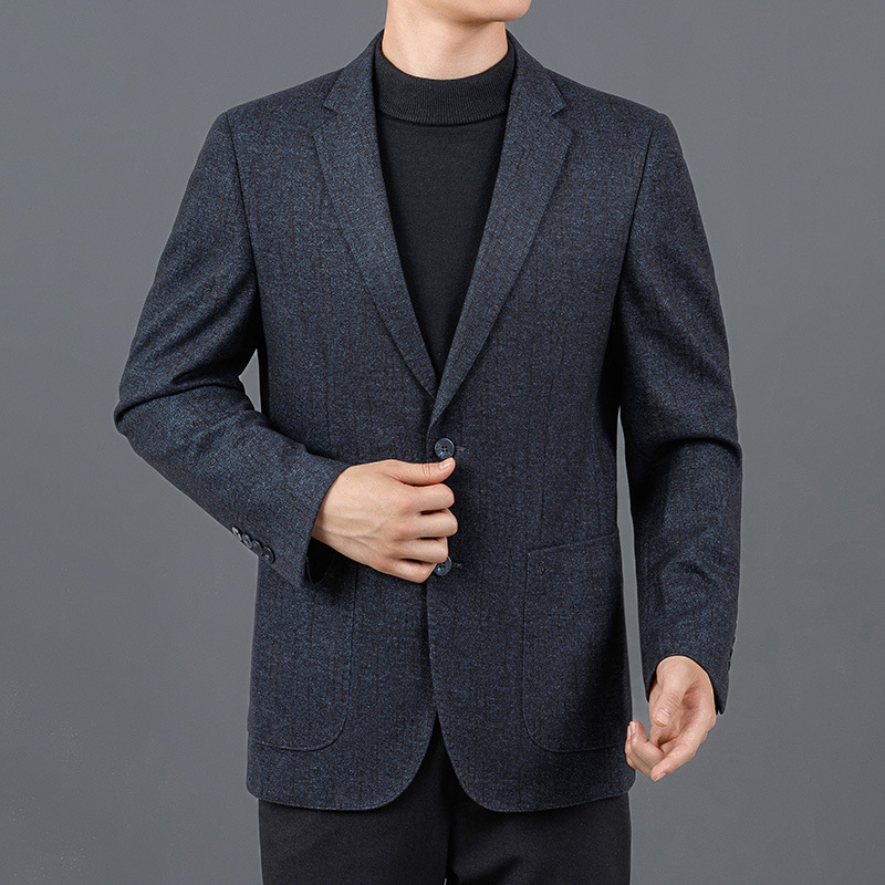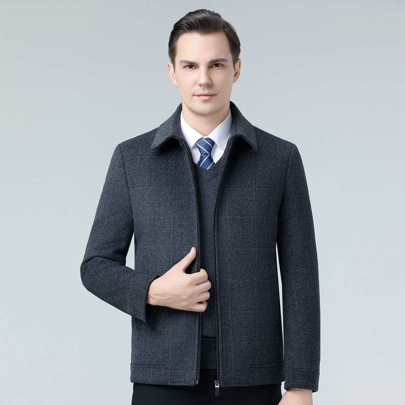 2024 秋と冬の新メンズウールジャケット中年男性カジュアルラペルダウンウールジャケット男性