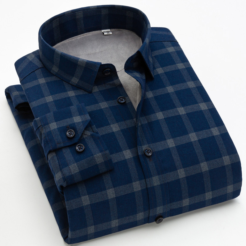暖かいシャツメンズ長袖冬の新しいベルベット厚みのある中年ビジネスカジュアルプロフェッショナルフォーマルチェック柄シャツ