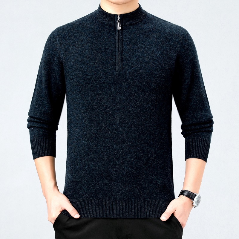 2024 秋と冬厚みのあるメンズカシミヤセータープルオーバージッパーカラーカジュアルファッション中年セーターニットウールセーター