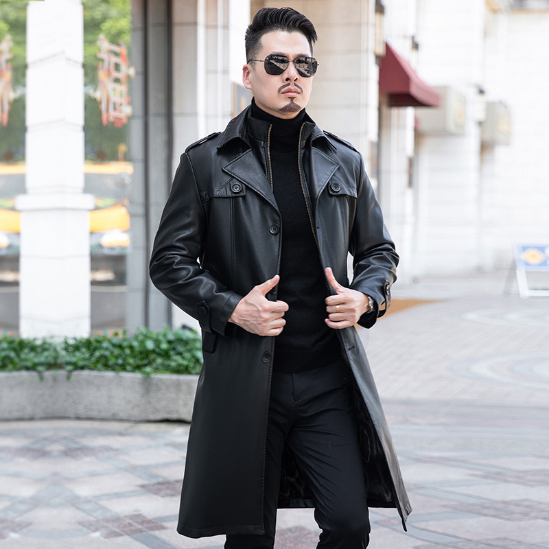 秋冬新作 海寧革服 青中年男性用 レザージャケット ミドル丈 裏起毛 厚手 羊革 ウインドブレーカー