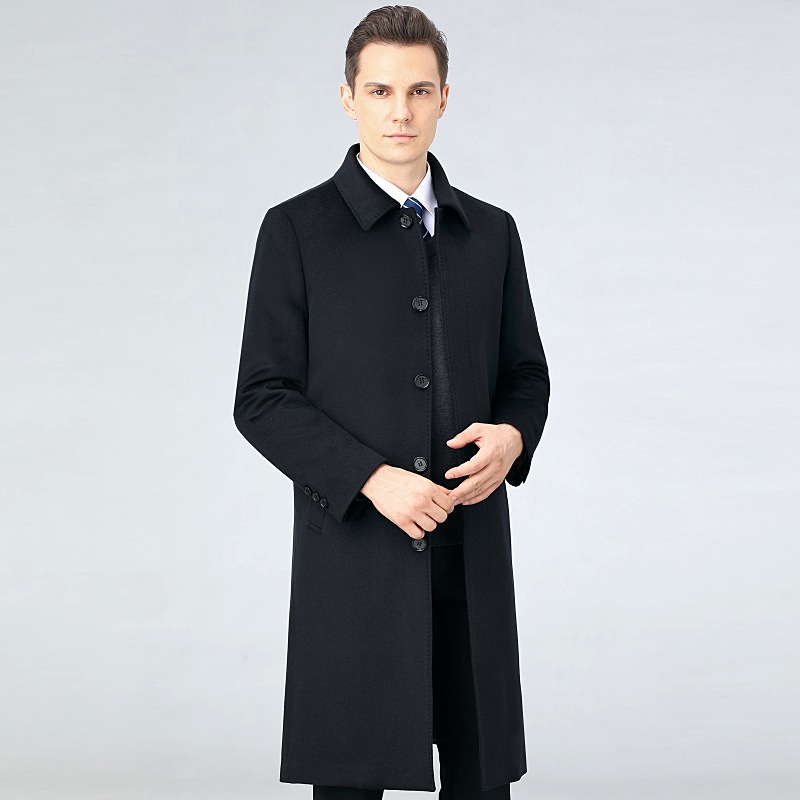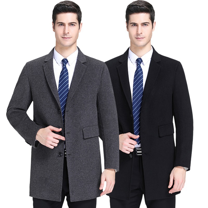中年男性用冬服、両面カシミヤコート、ミドル丈バックスリットウールスーツジャケット、男性用
