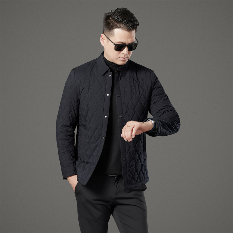 24 冬メンズ綿コート青と中年のラペルカジュアルトレンド暖かいシルク綿コートとジャケット男性用カジュアルジャケット
