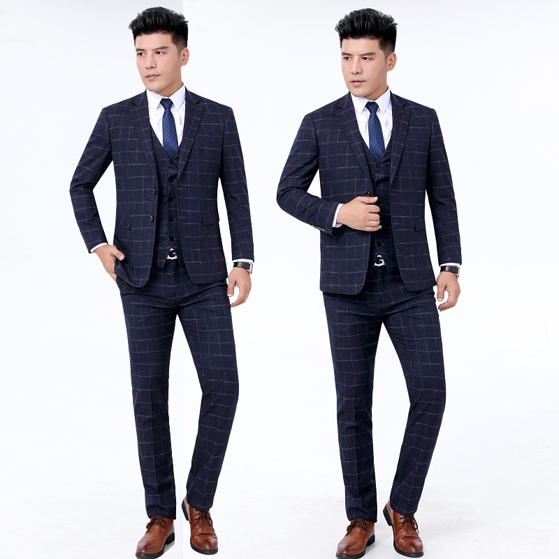 秋冬新作メンズスーツスーツチェック柄ベストスリーピース韓国風ビジネスプロフェッショナルウェアホワイトカラー結婚式ドレス