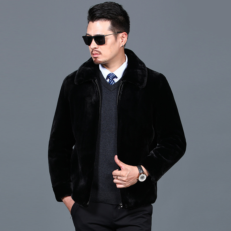 2023 秋冬毛皮一体型ゴールデンミンクベルベットメンズコートラムウール粒子中年厚く暖かいコート