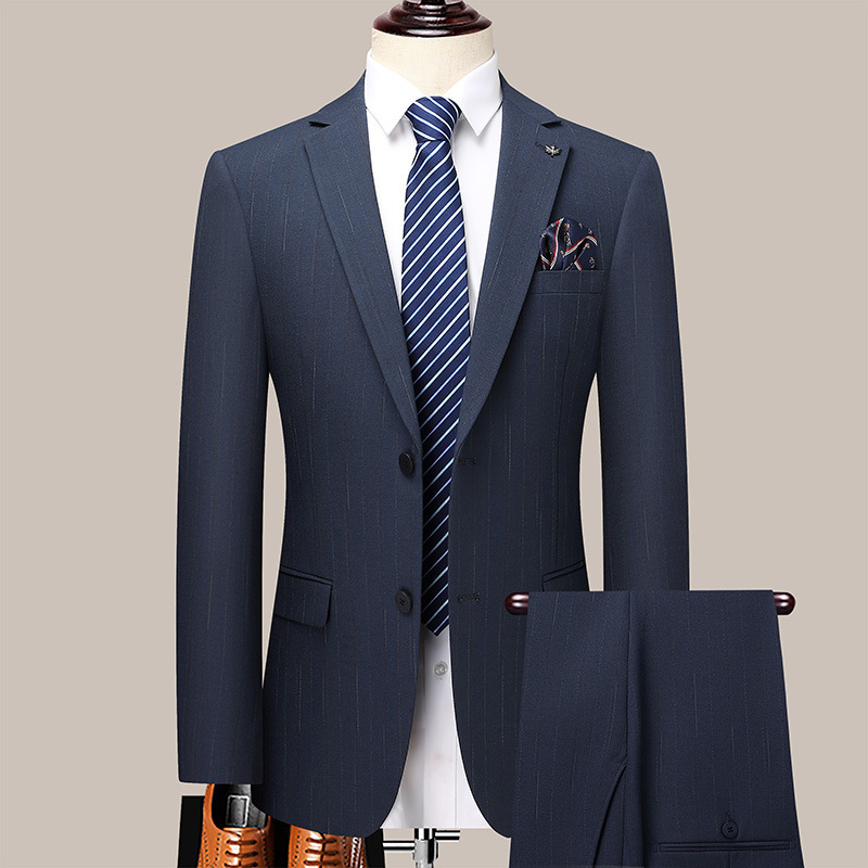 ストライプスーツスーツメンズビジネスプロフェッショナルフォーマルウェアミッドスリットファッション多用途ホワイトカラー販売作業服
